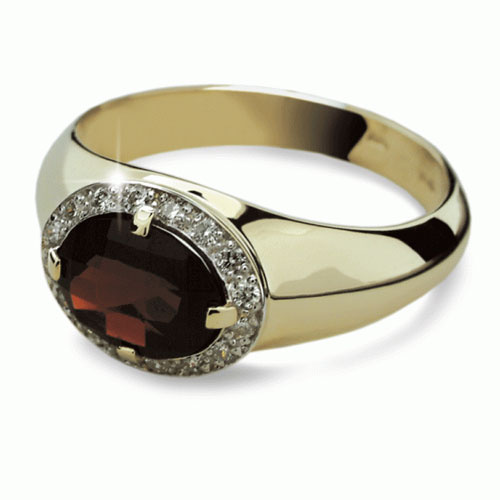 Briliantový prsten Danfil DF1892, materiál žluté zlato 585/1000, 1x granát, 25x briliant SI1/G = 0.1
