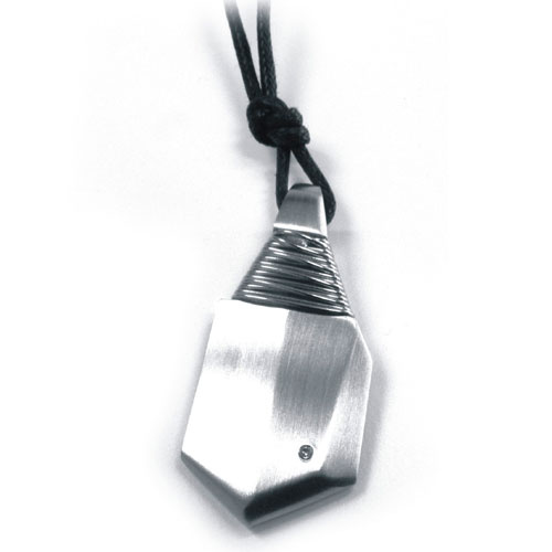 Ocelový přívěsek s vloženým diamantem je dodáván vč. bavlněné tkaničky.