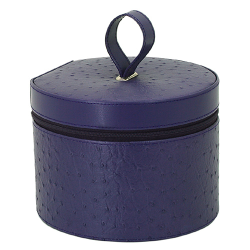 Luxusní kožená šperkovnice (imitice pštrosa) kulatého tvaru.